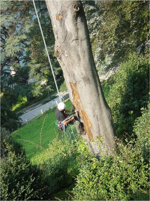 In altri casi la relazione può indicare l’intervento applicando in punti precisi dei Consolidamenti tramite funi apposite con ancoraggi al fusto o ai rami, sempre nell’assoluto rispetto della pianta.
