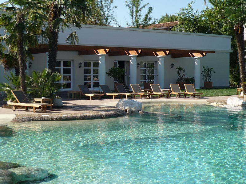 Immagina di essere in una piscina con spiaggia, bagnasciuga, sedute sommerse, zone nuoto. Ed ancora essere massaggiati e rinfrescati da un’effusione di bollicine d’aria che sale dal fondale. Immagina una piscina perfettamente inserita nel contesto paesaggistico circostante. Una piscina naturale con acqua cristallina che impreziosisce il giardino in tutte le stagioni.