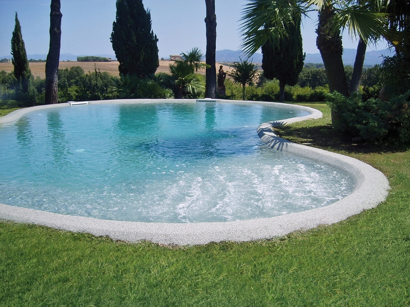 Sempre uniche nella forma e nel design, le Piscine Biodesign creano uno spazio su misura. Il fondale e i camminamenti in sabbia di marmo conferiscono sicurezza e confort al calpestio.